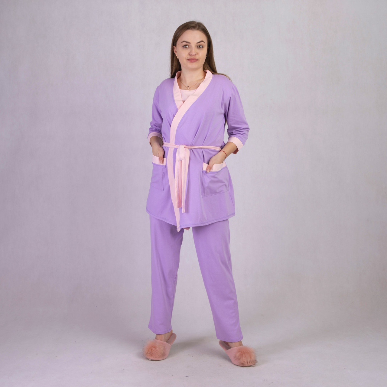 Показати оптові ціниПіжама-трійка фулікра для дому халат із піжамою фіолетовий р42-54