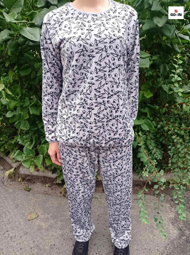 Махрова жіноча піжама. Тепла жіноча піжама, полотно махра (вельсофт), дуже тепле та м'яке. Штани на м'якій гумці без манжетів. Розміри повномірні 48-50, 52-54, 56-58. Шикарна, тепла махрова піжама є ідеальним рішенням для жінок, які цінують комфорт і люблять мати гарний та елегантний вигляд навіть уночі. Комплект можна використовувати як піжаму, так і як домашній костюм. У ньому вам буде тепло та комфортно.