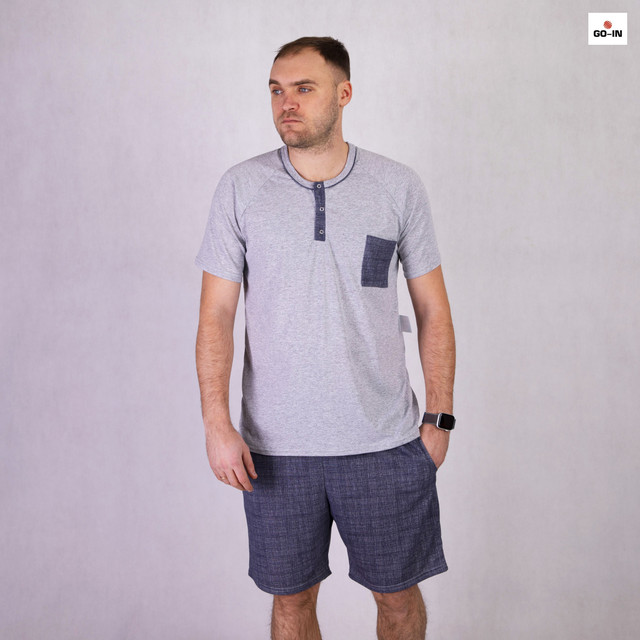 Показати оптові ціниПіжама чоловіча літня футболка з шортами бавовняна сіра 44-60р.