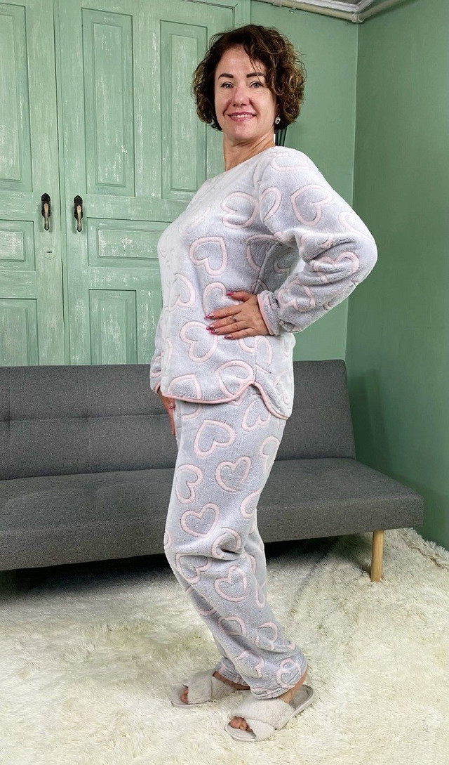 Показати оптові ціниМахрова жіноча піжама. Тепла жіноча піжама. Полотно махра (вельсофт), дуже тепле та м'яке. Розміри повномірні 48-50, 52-54, 56-58. Штани на м'якій гумці. Комплект можна використовувати як піжаму, так і як домашній костюм. У ньому вам буде тепло та комфортно. Піжама може бути дуже гарним подарунком для вас і ваших рідних.